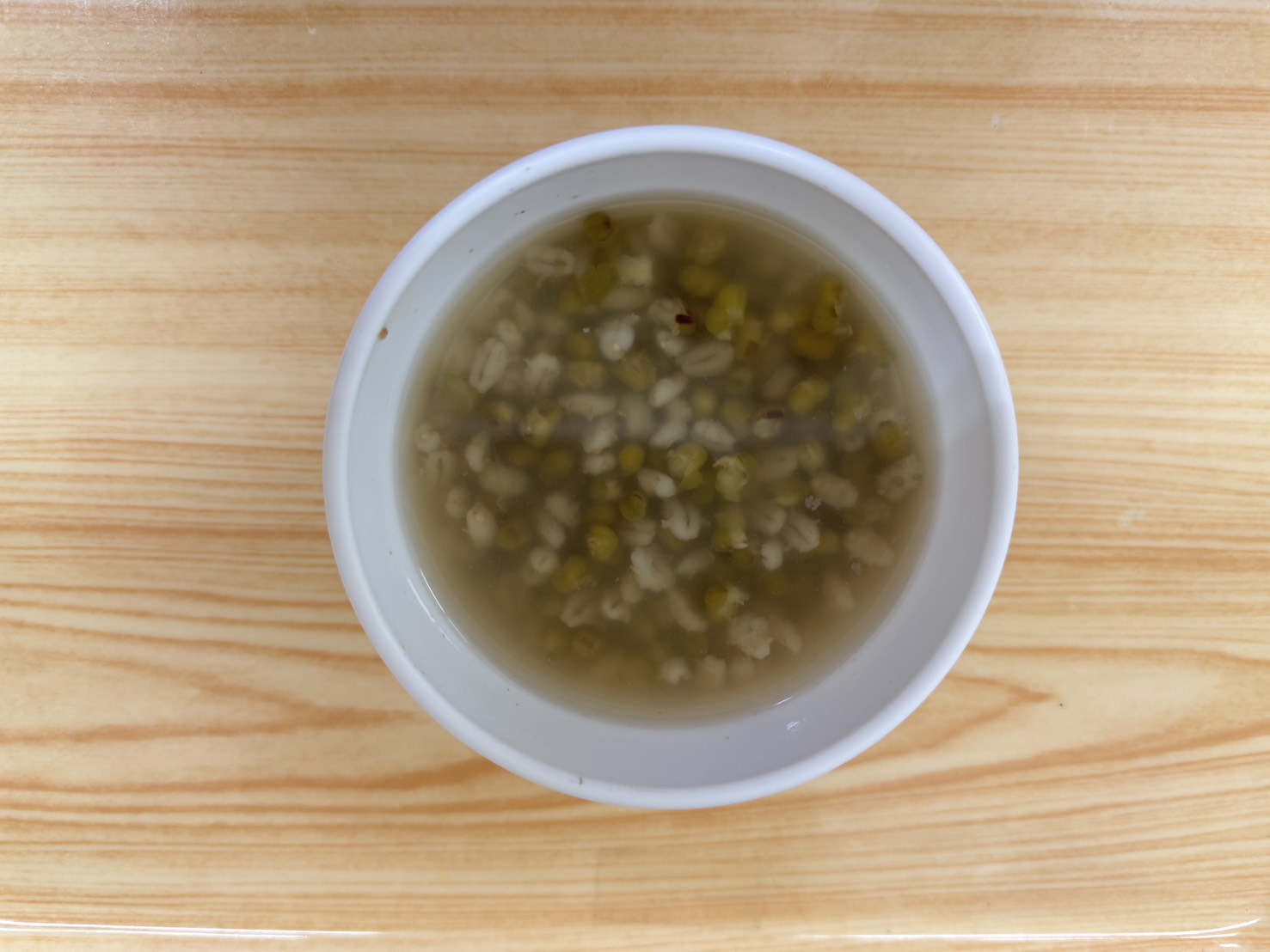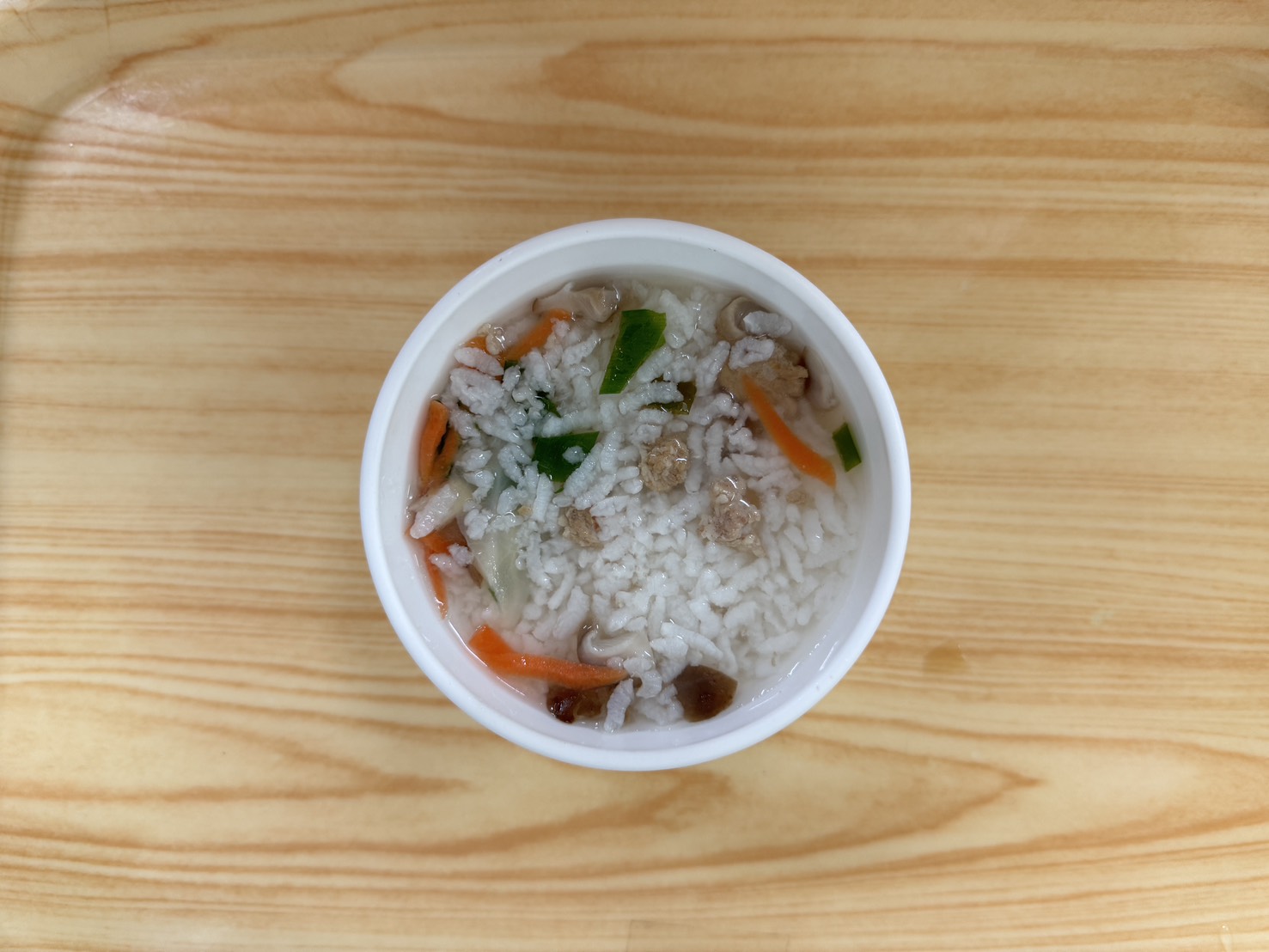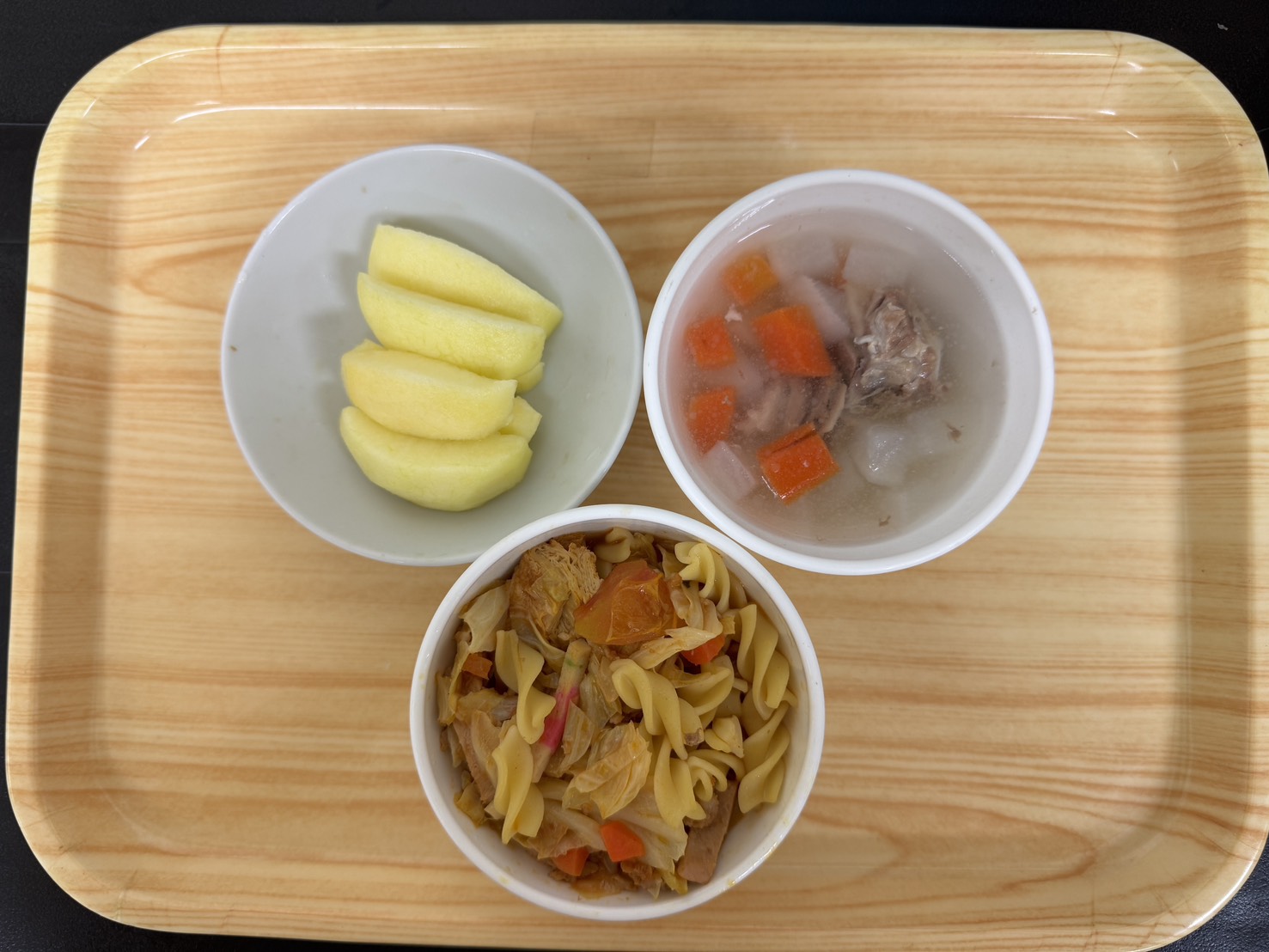 紅燒豆腐/香菇肉絲/時蔬青菜/胚芽米飯/蔬菜蛋花湯/時令水果